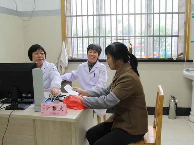 签约仪式后,民革党员中的心内科主任医师彭放、肝胆外科主任医师阮新贤、妇科主任医师阮雅文和肝病科主任医师沈华江分别来到相应的科室,为患者提供医疗服务,同时耐心的为卫生院的医护人员做指导。