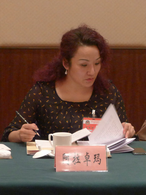阿拉卓玛在繁忙工作的同时,积极参政议政。每年的“两会”前夕,她都认真进行实地走访和社会调查,精心撰写提案,传递“社情民意”,为社会事业建言献策。她的提案“关于开展群众性文化活动的几点建议”,贴近群众心声,观点独到,建议可行。在政协务虚会上,她作了题为“汇集和推动民意实现,积极促进政协民主协商”的发言,提出要在民主协商的四性(广泛性、基层性、民生性、建设性)上下功夫,融入了她自己对政协工作的理解,体现了对民意的尊重。