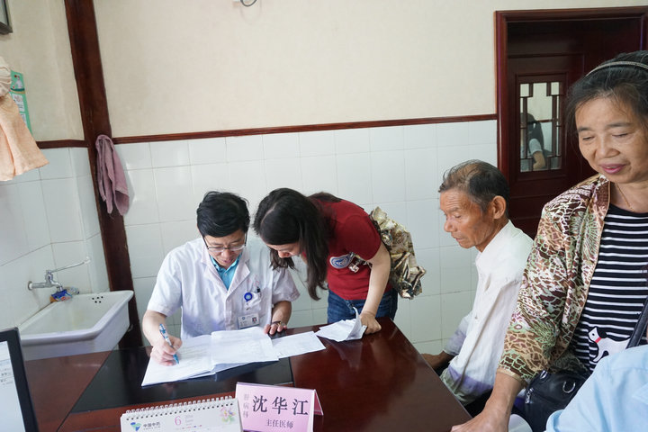 6月17日,绍兴市政协副主席、民革绍兴市委会主委余利明带领组织部分民革党员中的政协委员和医卫专家一同走进诸暨市璜山镇开展爱心帮扶活动。