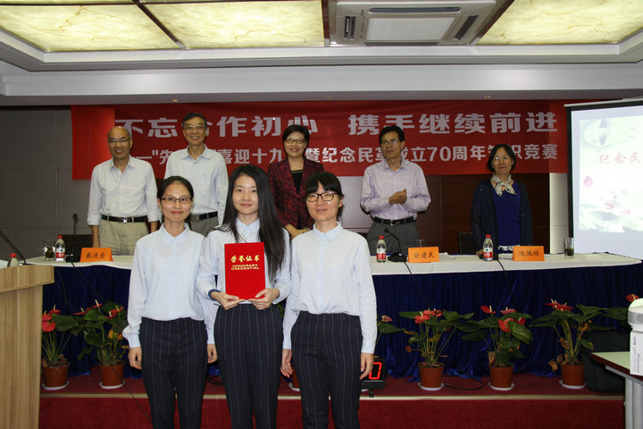 在省委会的比赛中共有来自全省各地市和省直支部的12支代表队参加。绍兴民革三位党员在比赛中,沉着应对,以小组第一、决赛第一的成绩荣获此次比赛的一等奖。民革浙江省委会专职副主委刘净非、副巡视员俞建民等领导为三位党员颁奖。 |