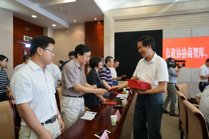 根据八届市政协工作安排,市政协在今年5月份启动了八届市政协协商智库和派驻民主监督小组的筹建工作,经过多轮遴选,并经市政协党组(扩大)会议和市政协八届三次主席会议审议通过,产生了30位协商智库成员和10位派驻部门民主监督小组组长、40位民主监督小组成员。