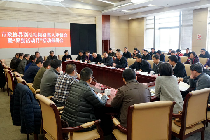 2018年1月10日上午,市政协召开界别活动组召集人座谈会暨“界别活动月”活动部署会,听取各界别活动组召集人、联络组组长对市政协党组班子及其成员的意见建议,部署“界别活动月”活动具体工作安排。市政协主席魏伟,副主席倪善贵,秘书长钟海,市政协机关各室委主任、专职副主任,各界别活动组一位召集人,各区、县(市)市政协委员联络组一位组长参加会议。会上,民革、民盟、妇联、农业和农村界等4个界别活动组召集人还作了经验介绍和表态发言。